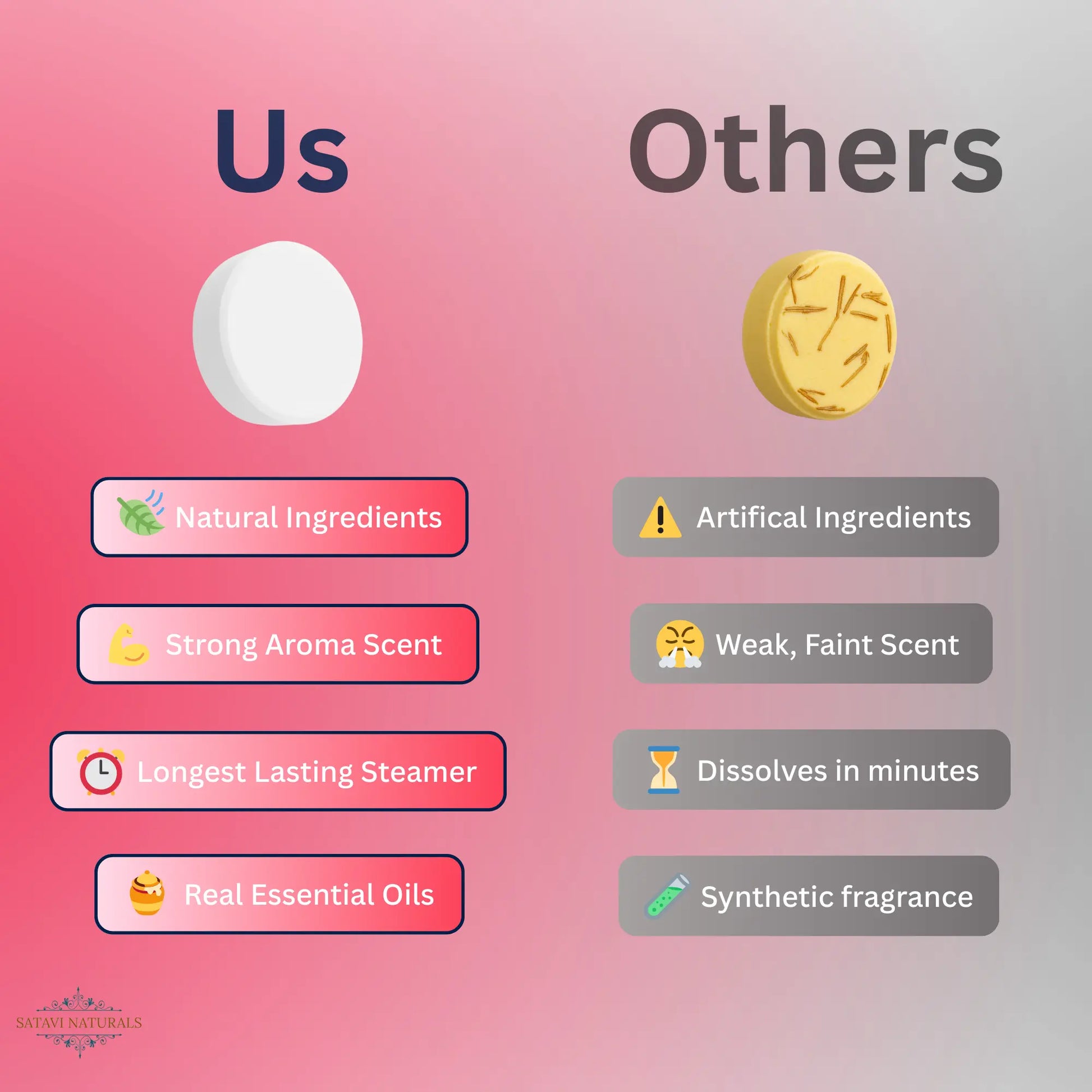Shower steamers are best designed for showers. For bathtubs, we recommend using bath bombs or soaks.